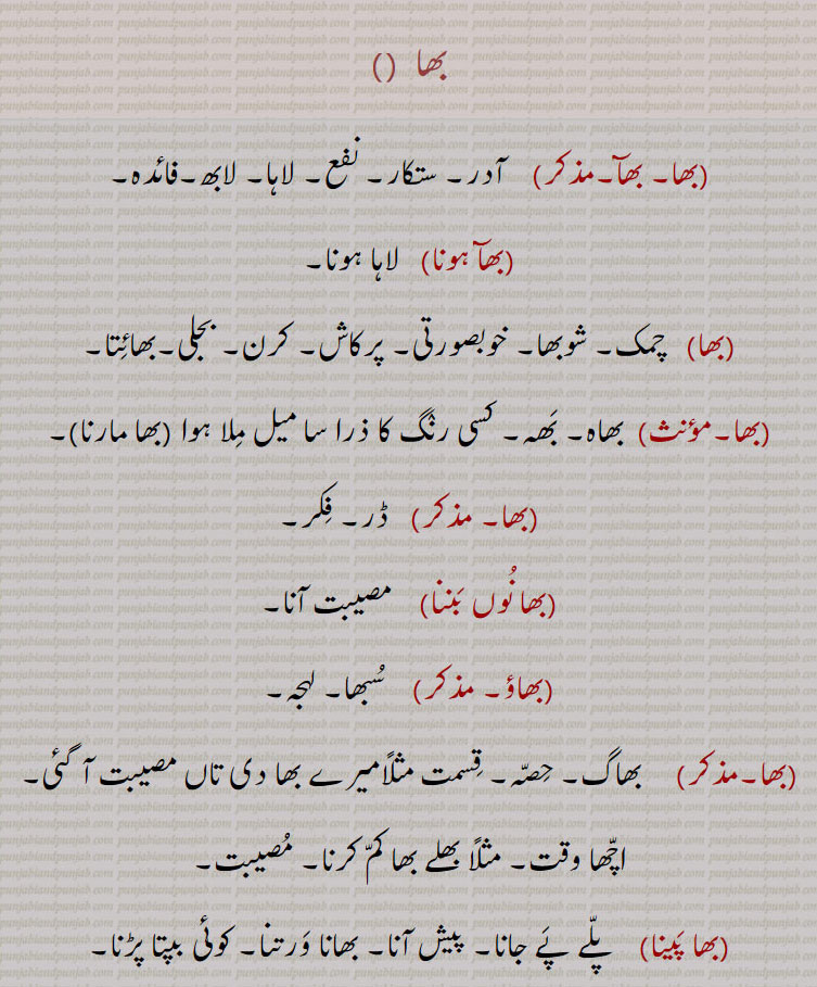 بھا,  bha,ਭਾ, بھآ, بھا ہونا, بھا نوں بننا, بھاؤ, بھا پینا, بھا ڈڈھ ,بھا,بھاؤ, bHa didh bha,