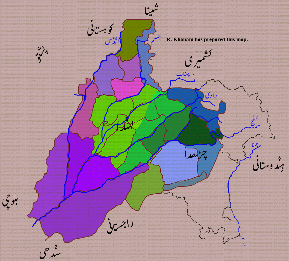 ‘Punjabi’ (ਪੰਜਾਬੀ , पंजाबी , پنجابی), also spelled ‘Panjabi’, is a cultural region straddling the border between West Punjab (Pakistan) and East Punjab (India). History shows that this region, due to the influence of Persian language during the Mughal Period was named as Punjab due to the reason that it has five rivers namely, the Jhelum, the Chenab, the Ravi, the Sutlej, and the Beas. Punjabi is spoken by inhabitants of Punjab region (in Pakistan and India) and also some dialects of Punjabi are spoken in North-West Frontier Province of Pakistan, Kashmir and the suburban areas of Punjab.
